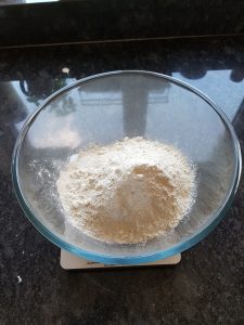 - Weigh the flour to your mixing bowl add the salt and mix briefly.